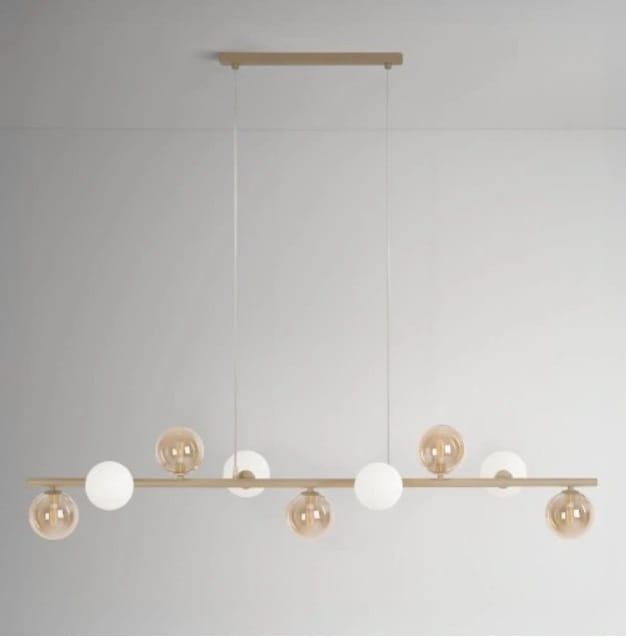 Beżowa lampa wisząca z białymi i bursztynowymi kloszami 9xG9