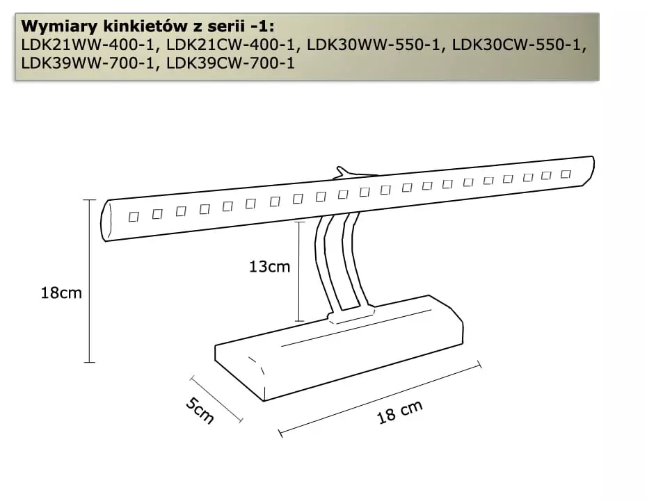 Kinkiet LED 70 cm Barwa ciepła Lampa nad obraz lustro