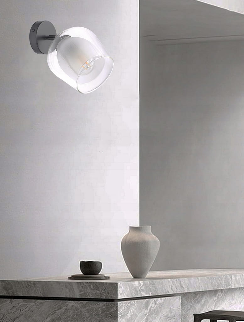 Kinkiet ścienny czarny lub biały lub chrom. Białe szklane klosze dzwonki