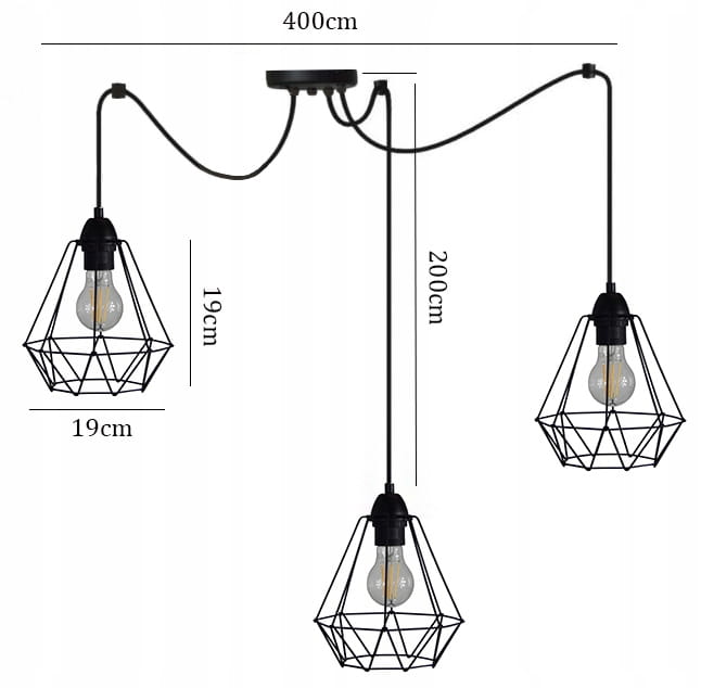 Lampa pająk czarna stalowa druciana wisząca Żyrandol metalowy klosz.