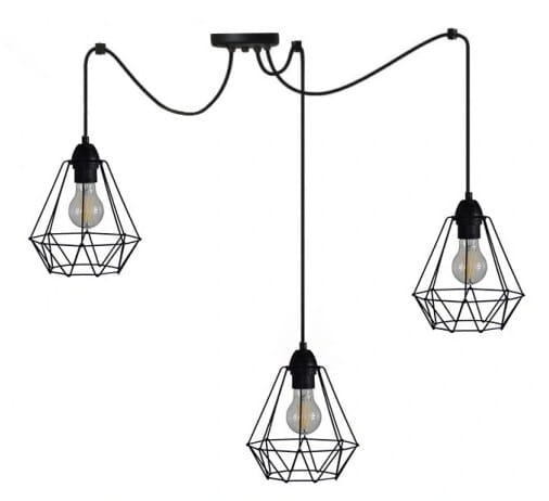 Czarna lampa w stylu "pająk" z trzema metalowymi kloszami w stylu minimalistycznym. Przewody, dzięki możliwości regulacji, zawiesisz na wysokości jaka Ci odpowiada. Nasza lampa będzie idealnym dopełnieniem przestrzeni w salonie lub jadalni. Świetnie sprawdzi się jako oświetlenie nad stolik kawowy czy jadalniany stół.