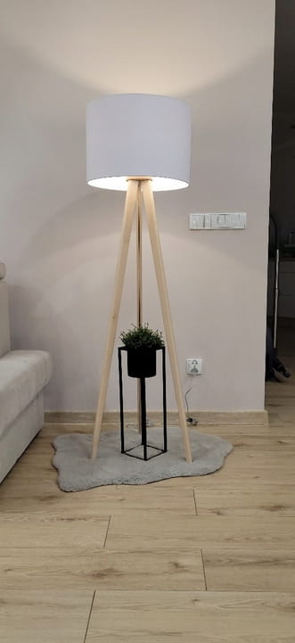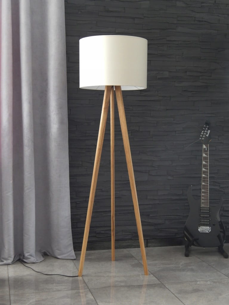 Lampa podłogowa 166 cm stojąca Loft TROJNÓG, ABAŻUR, drewno. Różne kolory.