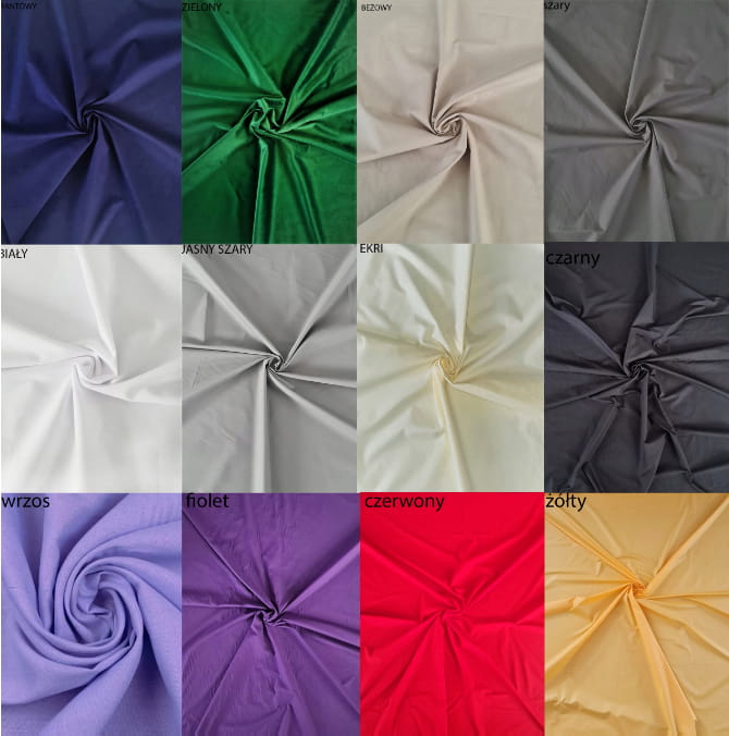 Kolory abażuru do wyboru: czarny, jasny szary, brązowy, granatowy, beżowy, biały, czerwony, szary, zielony, ekri, zółty, wrzos, fiolet