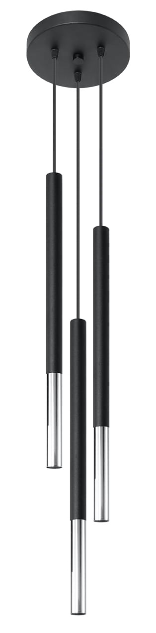 Lampa sufitowa wisząca czarna + chrom 90 cm trzy klosze
