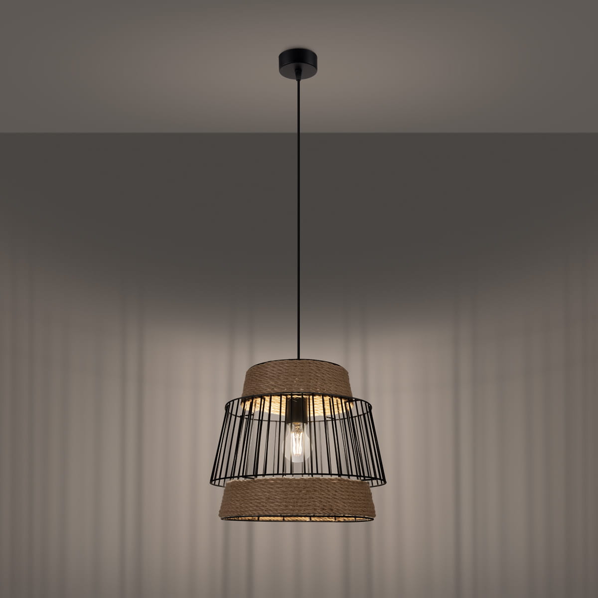 Dzięki lampie stworzysz niepowtarzalną atmosferę w swoim domu. Światło rozprzestrzenia się delikatnie przez drewniane i stalowe detale, tworząc przytulną i harmonijną aurę. Oświetlone w ten sposób wnętrze zaprasza do odpoczynku, którego tak potrzebujesz!