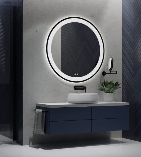 Lustro okrągłe LED fi60 cm łazienkowe w czarnej ramie LOFT piaskowane włącznik ściemniacz zmiana barwy światła mata grzewcza