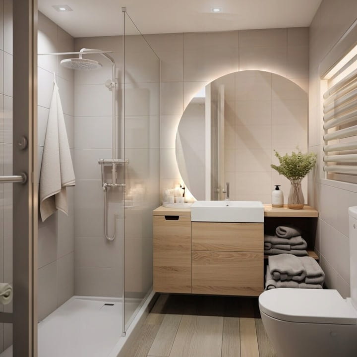 Lustro okrągłe ze ściętymi bokami. Lustro półokrągłe łazienkowe LED fi60. Idealne do łazienki, pokoju, przedpokoju, holu itp.