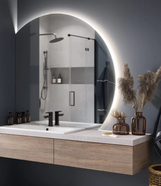 - standardowo oświetlenie led tylko po łuku (bez prostych krawędzi). Istnieje możliwość dokupienia podświetlenia ściętych boków (prosimy o informację jeśli chcą Państwo dokupić podświetlenie uciętych boków).
