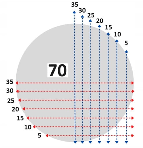- szerokość przycięcia boków (lustro docinamy w odstępach co 5 cm)