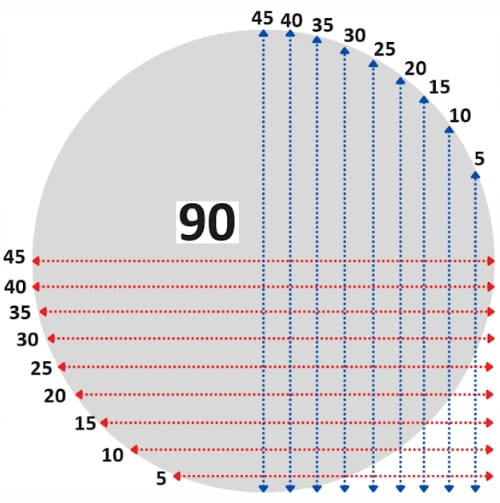 - szerokość przycięcia boków (lustro docinamy w odstępach co 5 cm)