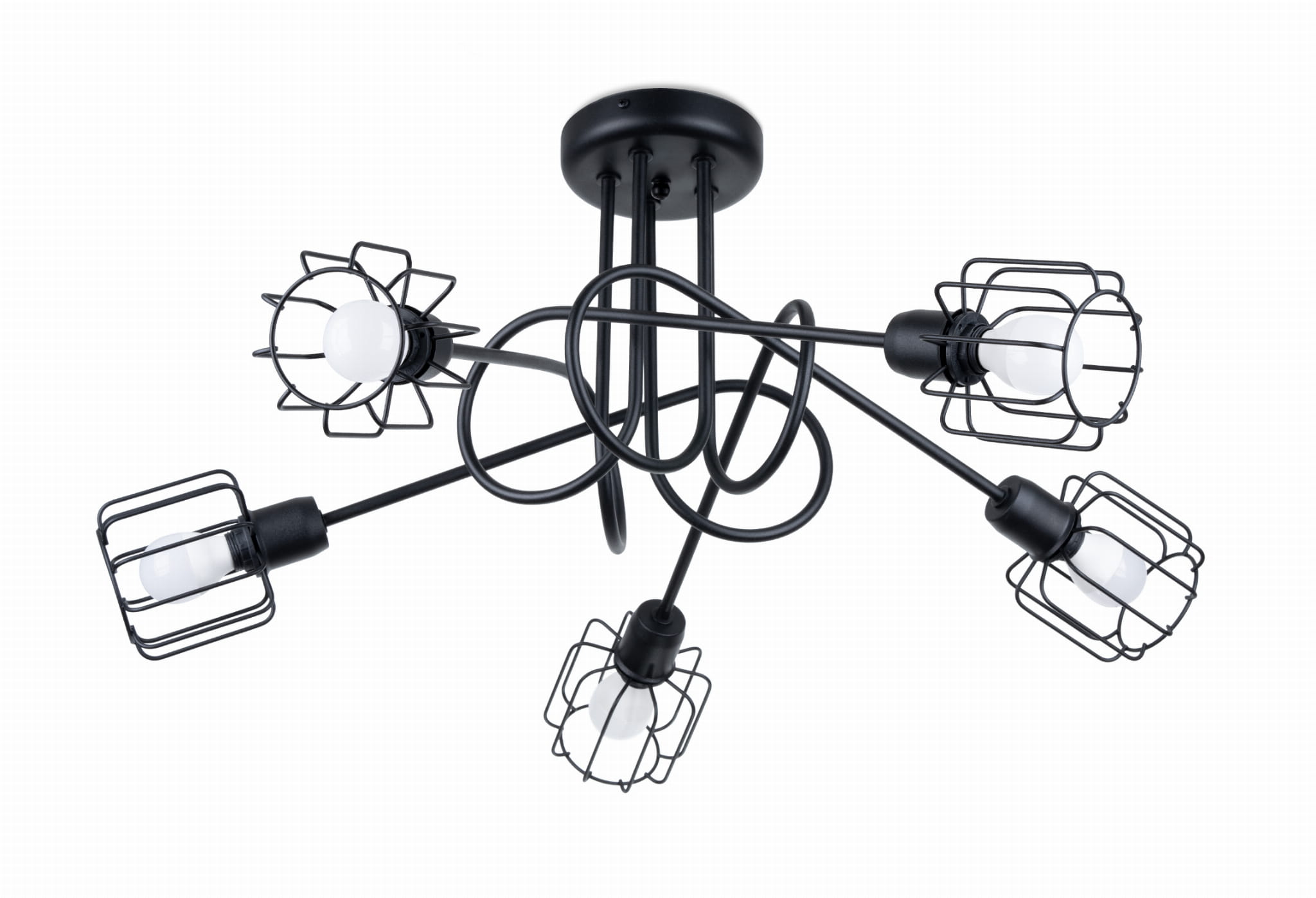 Oprawy dostępne są w wariantach z 1, 2, 3 lub nawet 5 punktami światła. W ofercie można znaleźć zarówno proste kinkiety, jak i sufitowe plafony oraz żyrandole, których przewody splatają się w niebanalną formę. Dopasuj najlepszą opcję do swojego wnętrza oraz śmiało sięgaj po całe zestawy BELUCI. Zestawiając obok siebie kilka lamp z tej kolekcji, osiągniesz ciekawy efekt wizualny, który doceni każdy miłośnik współczesnego designu.